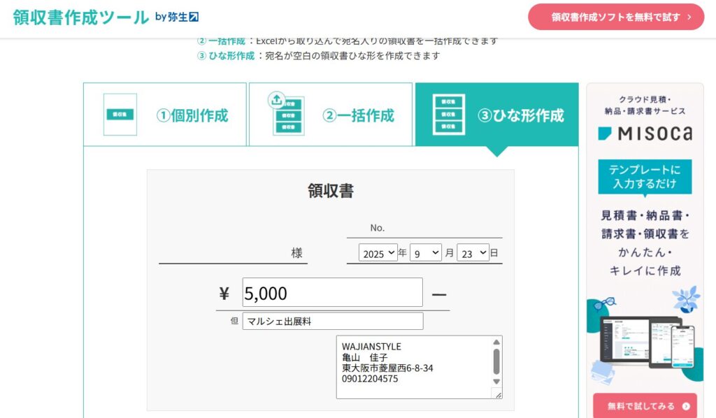 オンラインで簡単に領収書を作成できる「領収書.net(https://xn--lorw95b519a.net/)は、マルシェ出展者やセミナー講師の方にとって心強い味方です。