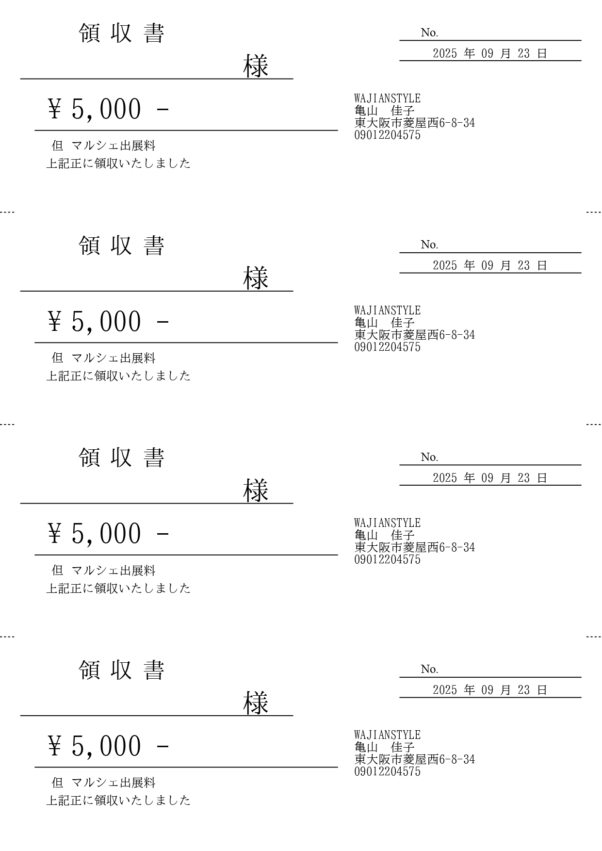 1日限りのイベントでも、現金で商品を購入してくださるお客様から領収書を求められることがあります。事前に数枚作成して持参しておけば、その場でスムーズに対応可能です。