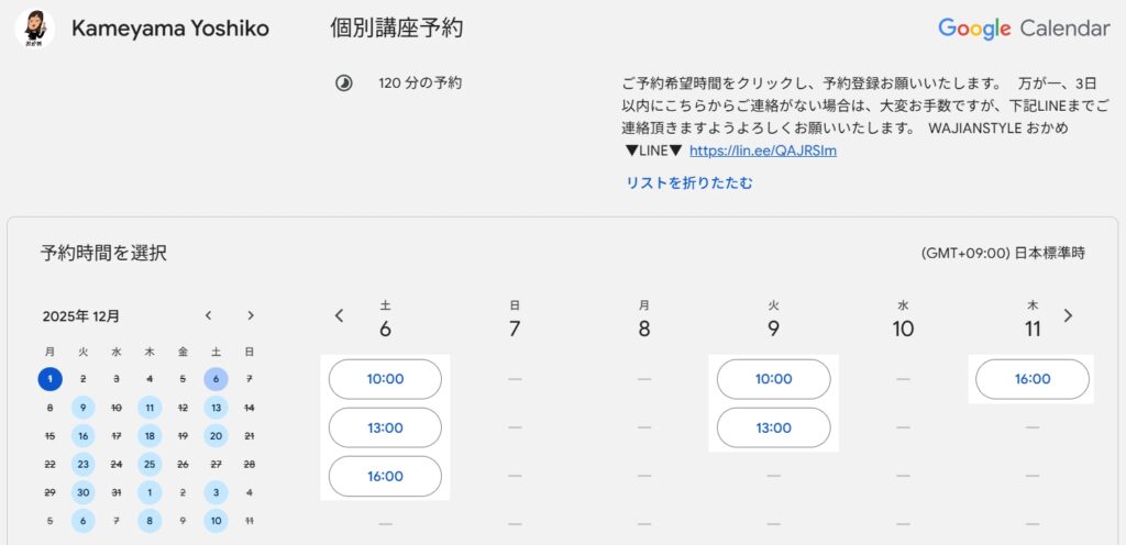 Googleカレンダーを使ってる人におすすめの予約スケジュール!自分の空き時間に調整してもらうようにします。
