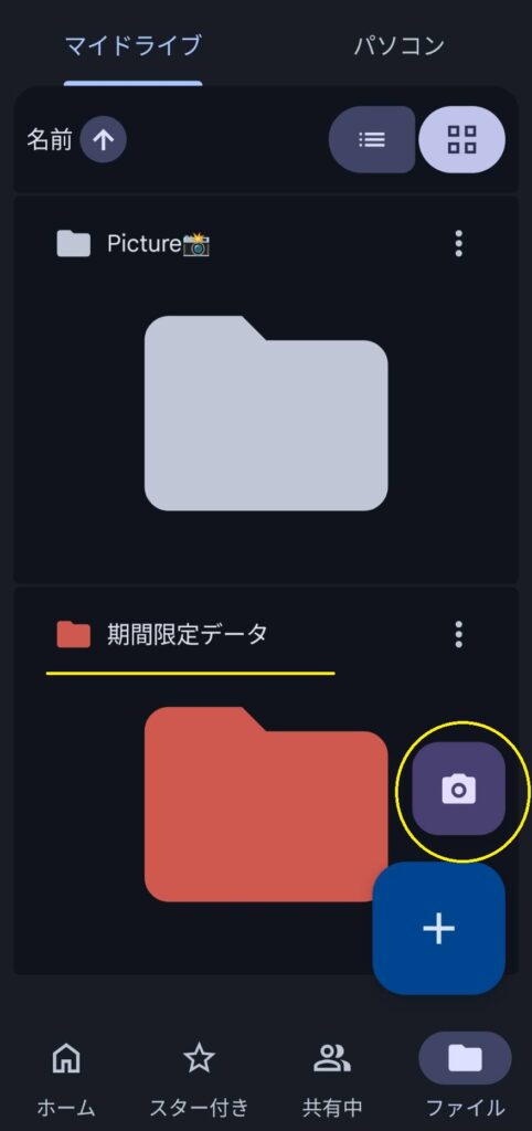- Googleドライブの「期間限定」フォルダに書類をスキャン)